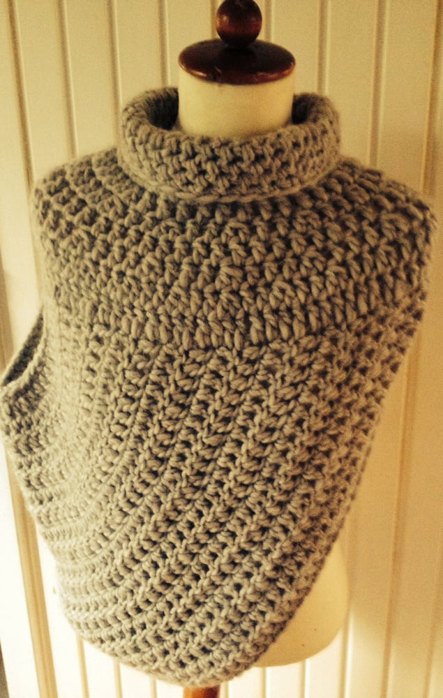 Hækleopskrift til Poncho i kraftig uld, inspireret af Hunger Games, Catching Fire.
