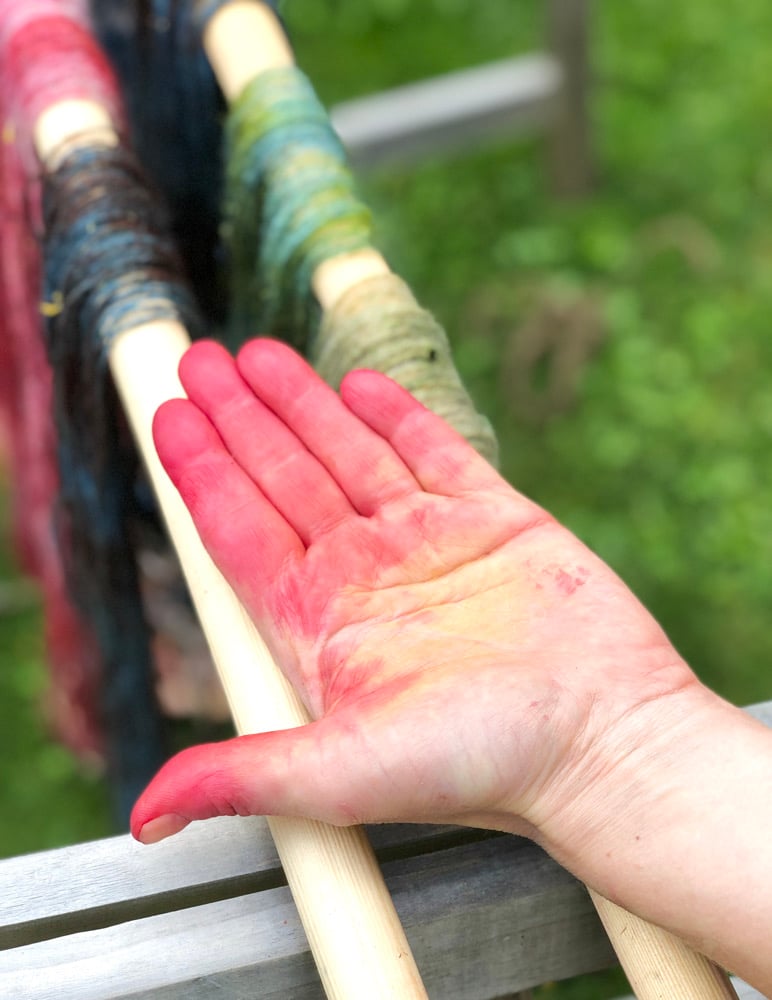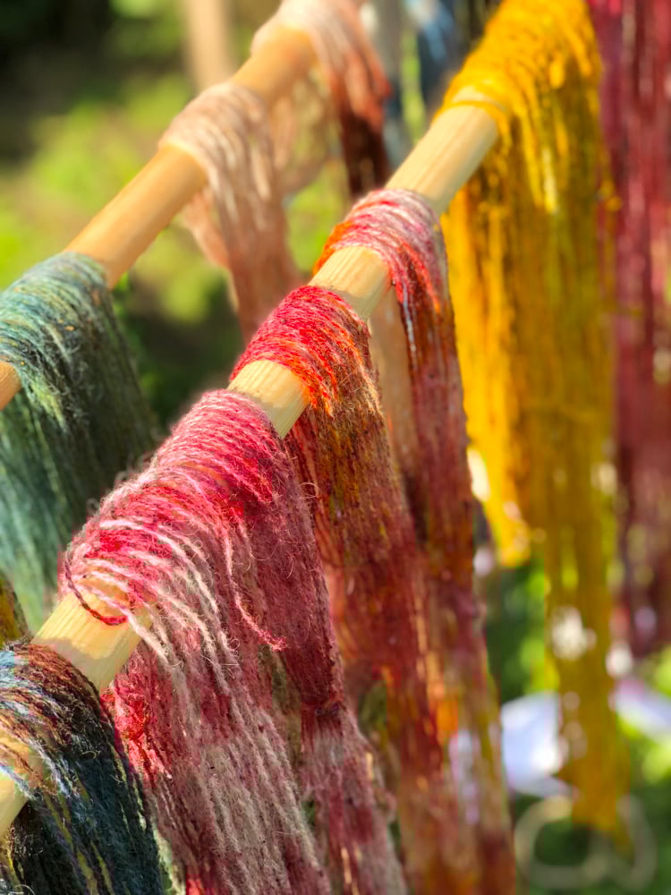 Vi skal bruge en teknik kaldet bundledye - som er en forholdvis ny teknik til plantefarvning af garn - og vi skal lege, bruge fantasien og eksperimentere med plantefarver og forskellige effekter på garn.