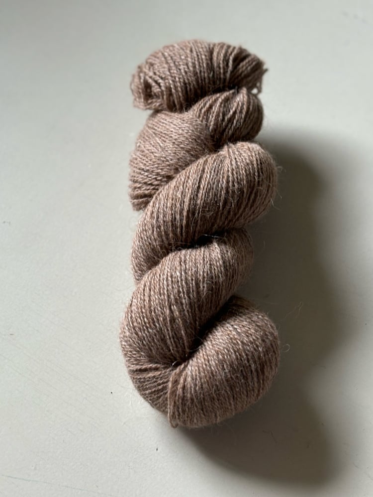 Dansk Østersøuld 400m Alpaka Merino er 2 trådet beige garn af 80% dansk ubehandlet uld fra danske alpakaer ved Ejby Mose i Glostrup og 20% ubehandlet hvid Falklands Merino.