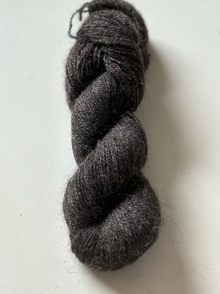 Dansk Østersøuld 275m er 2 trådet garn af 80% dansk uld fra danske landskabsplejende sorte, grå og brune Spælsau får ved Ejby Mose i Glostrup og 20% blød mørk Falklands Merino.