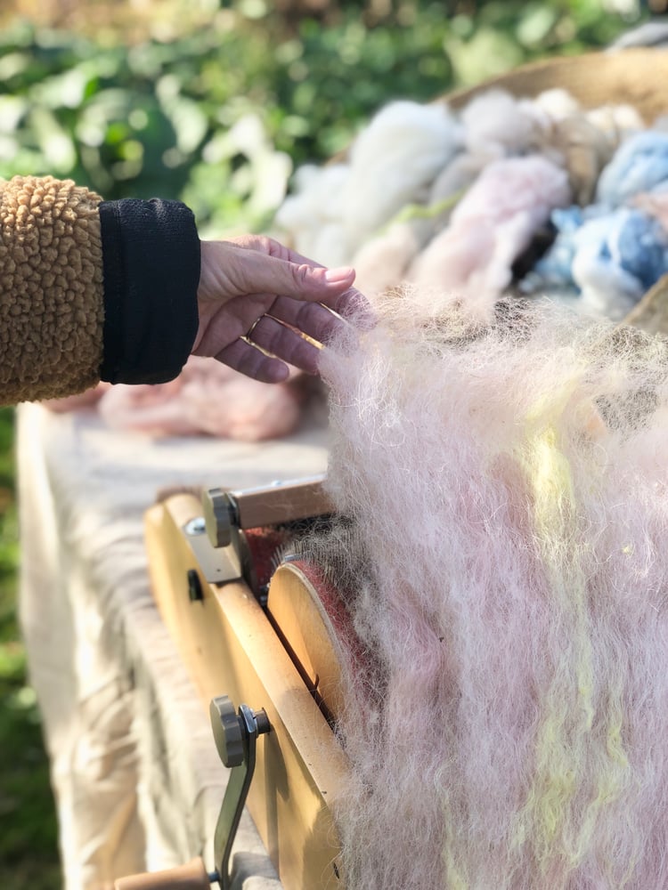 Vi skal arbejde med kartet råuld fra danske lokale får og spinde med håndten. Dernæst vil vi tvinde vores garn med håndten til tvundet 2 trådet garn.
