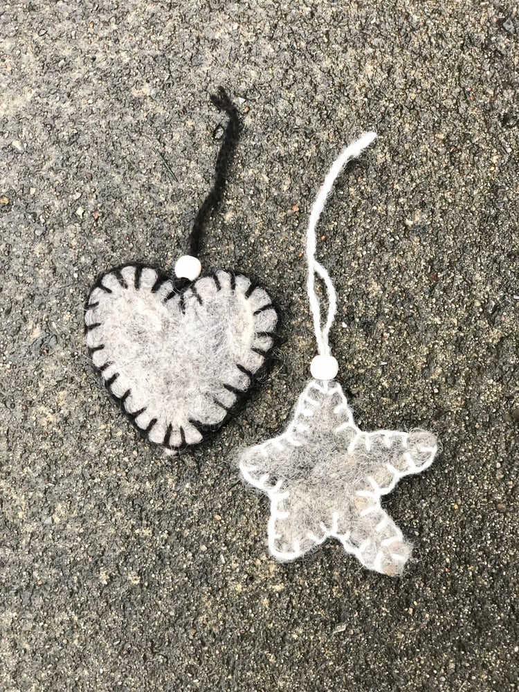 Vi har skabt en fin og unik filteopskrift, som gør det nemt at komme i gang med at nålefilte små hjerter og stjerner til pynt på juletræet.