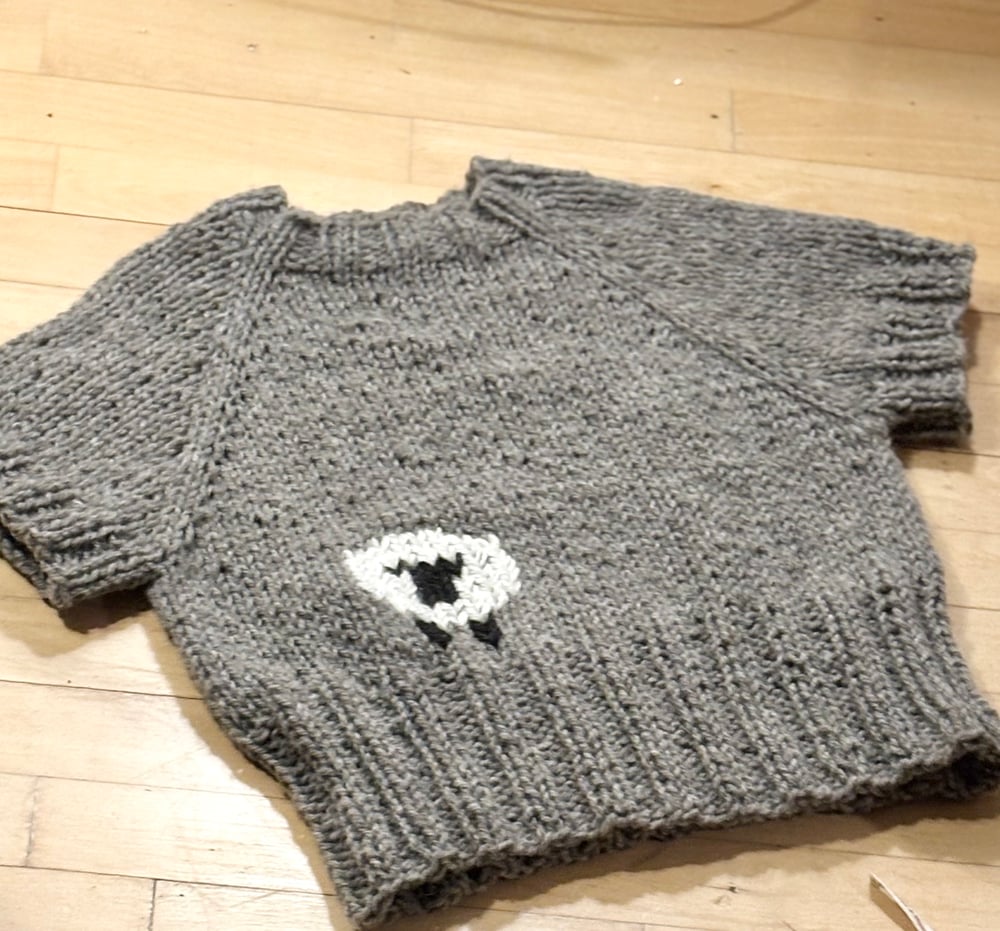 Sweateren er en simpel og nem vest strikket oppefra. Enkel og klassisk form med raglan og bred rib forneden, i hals og ærmer.