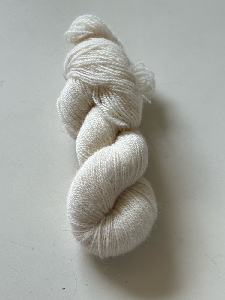 Dansk Østersøuld 125m Texel Merino er 3 trådet råhvidt garn af 80% dansk ubehandlet uld fra danske landskabsplejende hvide Texel får fra Hvidovre Ko- og Fåregræsserforening af 2000 i Hvidovre og 20% ubehandlet råhvid Falklands Merino.